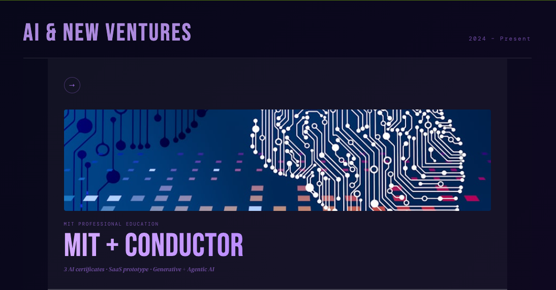 In early 2025, I stepped away from Amazon because I saw what was already here — AI — and what was coming: AI accelerating itself. I didn't want to manage it from the sidelines. I wanted to secure the skills to build with it.